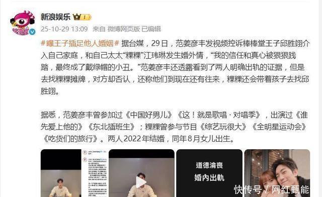 这下好了,那点破事网友们全都知道了,俩人也算是身败名裂了。 不知道您对此有什么看法呢?欢迎在下方评论区留下你的想法,喜欢文章记得点赞关注我们下期再见。 [免责声明]文章的时间、过程、图片均来自于网络,文章旨在传播正能量,均无低俗等不良引导,请观众勿对号入座,并上升到人身攻击等方面。观众理性看待本事件,切勿留下主观臆断的恶意评论,互联网不是法外之地。本文如若真实性存在争议、事件版权或图片侵权问题,请及时联系作者,我们将予以删除 信息来源: 百度百科:邱胜翊、范姜彦丰个人资料 范姜彦曝王子邱胜翊插足他人婚姻:到现在还有往来.搜狐娱乐.2025-10-29 粿粿回应出轨王子:有许多与事实不符的内容.搜狐娱乐.2025-10-29 王子晒旧照纪念棒棒堂出道13年:谢谢青春有你.中国青年网[引用日期2025-06-17]